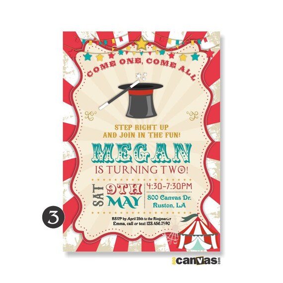 Magic Invitation Vintage Magic Show Birthday Red Circus Tent Etsy